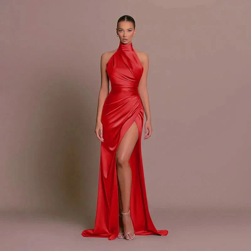 Step Into the Spotlight with the Elegant Rebecca Dress with Slit!