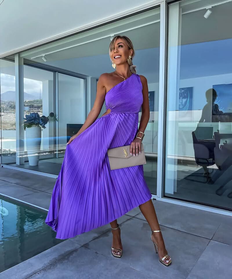 The elegant Rike One-Shoulder Midi Dress is the perfect blend of classic charm and modern sophistication. With its graceful one-shoulder design and flattering midi length, it is ideal for dinner parties, weddings, and any occasion where you want to feel stylish yet comfortable. This is the special dress you reach for when you want to shine without trying too hard.