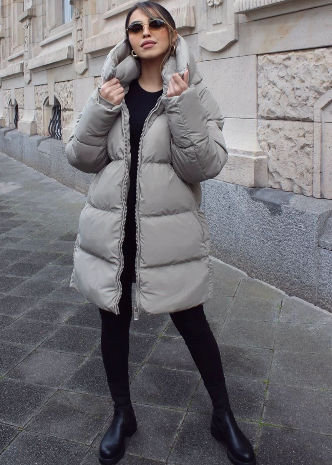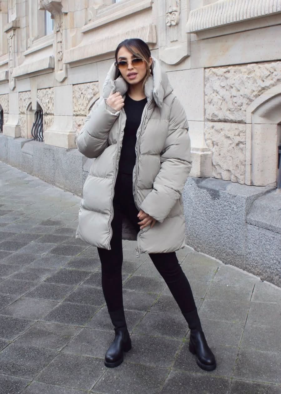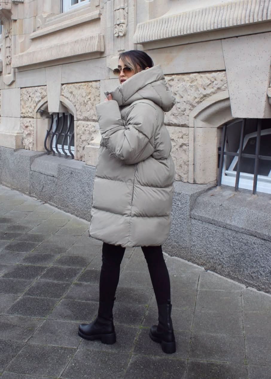 This lightweight, oversized winter jacket combines style with functionality! It features a high collar and a practical hood to keep you warm. The side pockets provide space for your essentials, while the double closure with both zipper and snap buttons ensures extra protection.