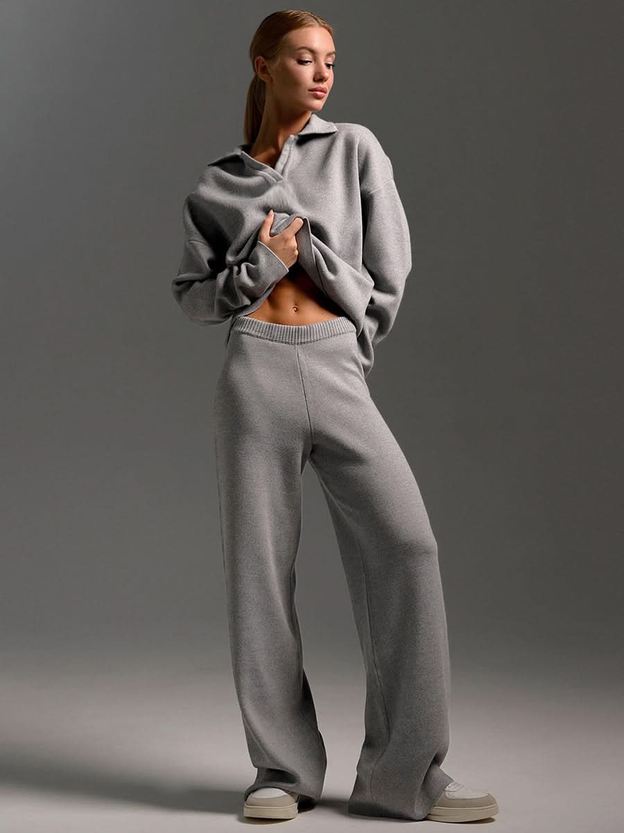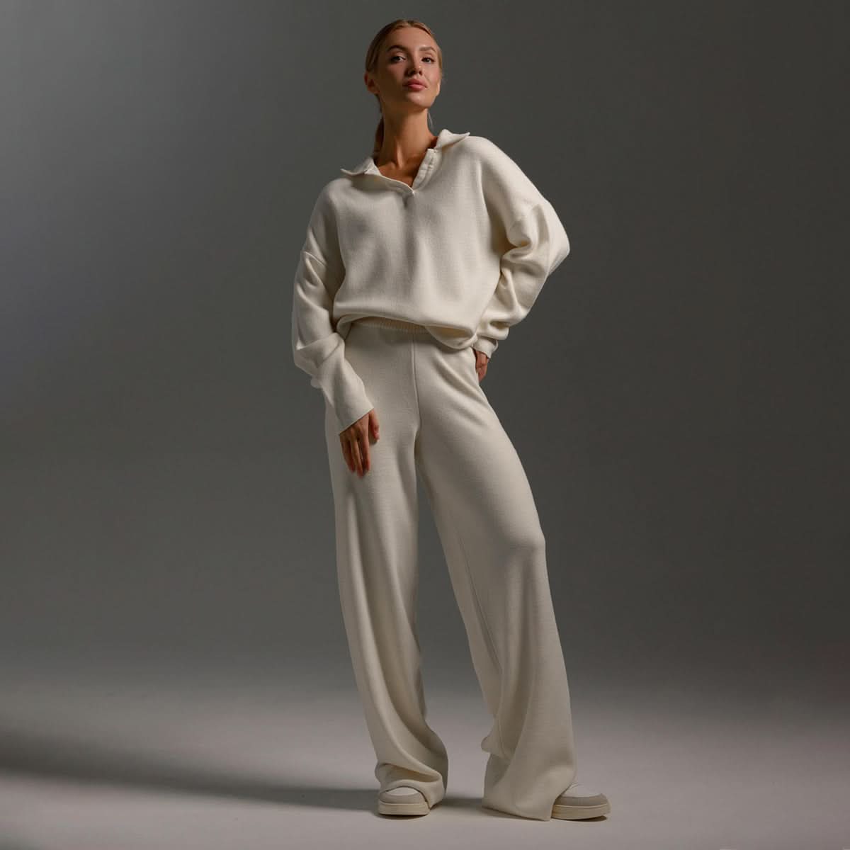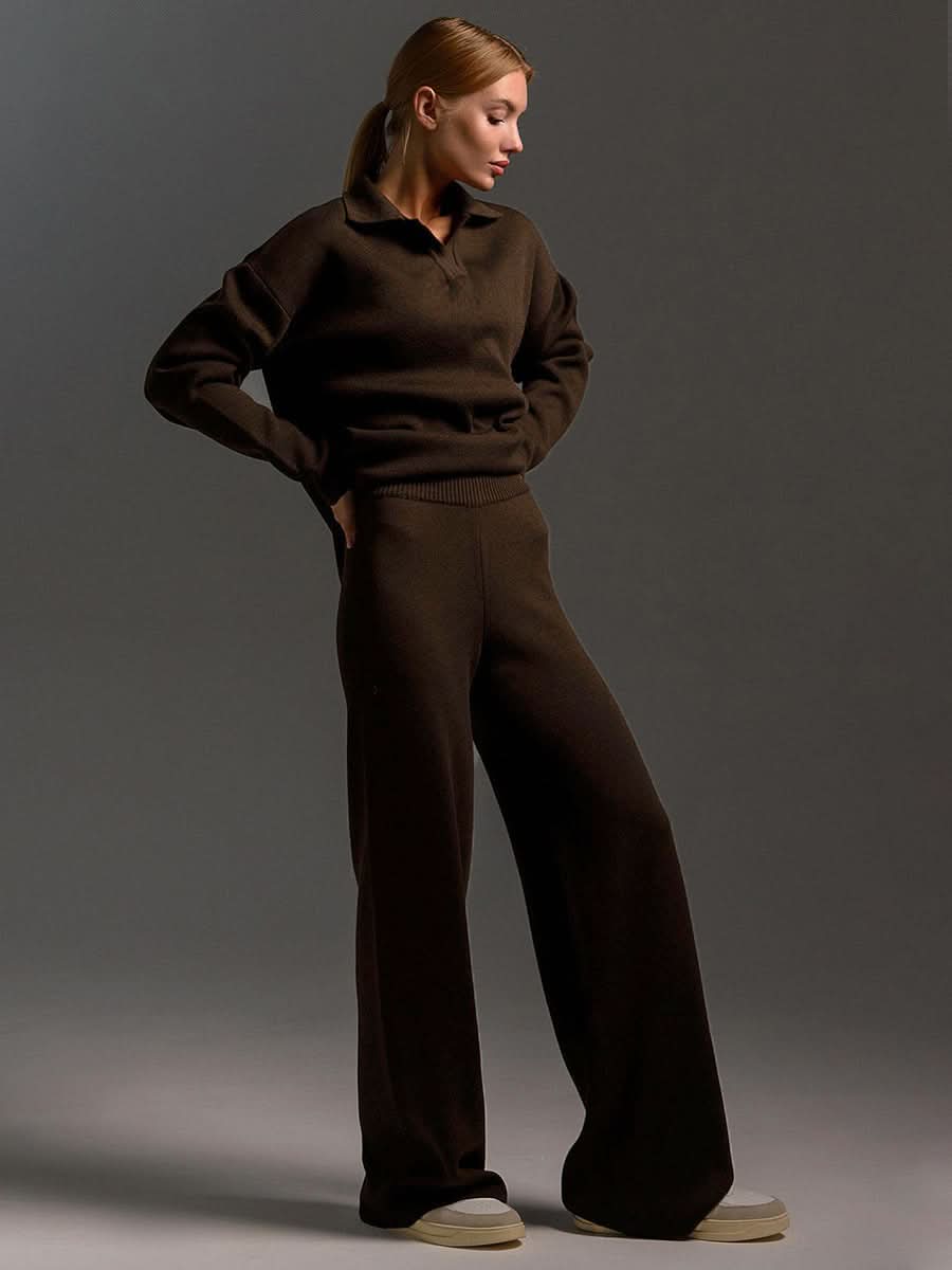 Damen Loungewear-Set – Strick – Oversized Pullover mit Kragen – Weit geschnittene Hose mit elastischem Bund