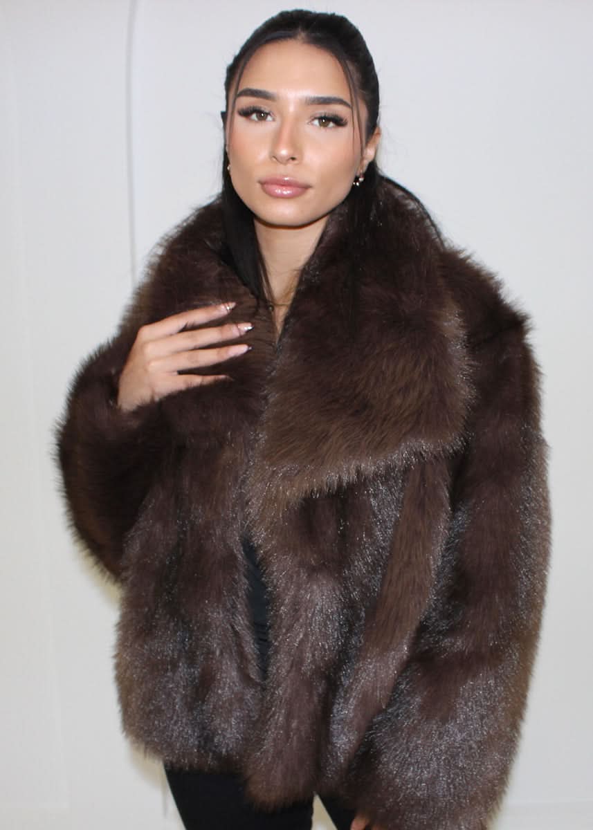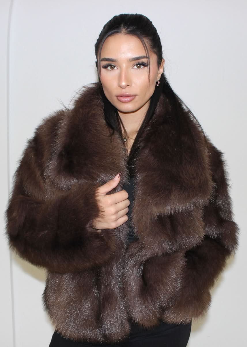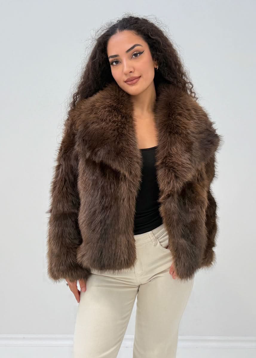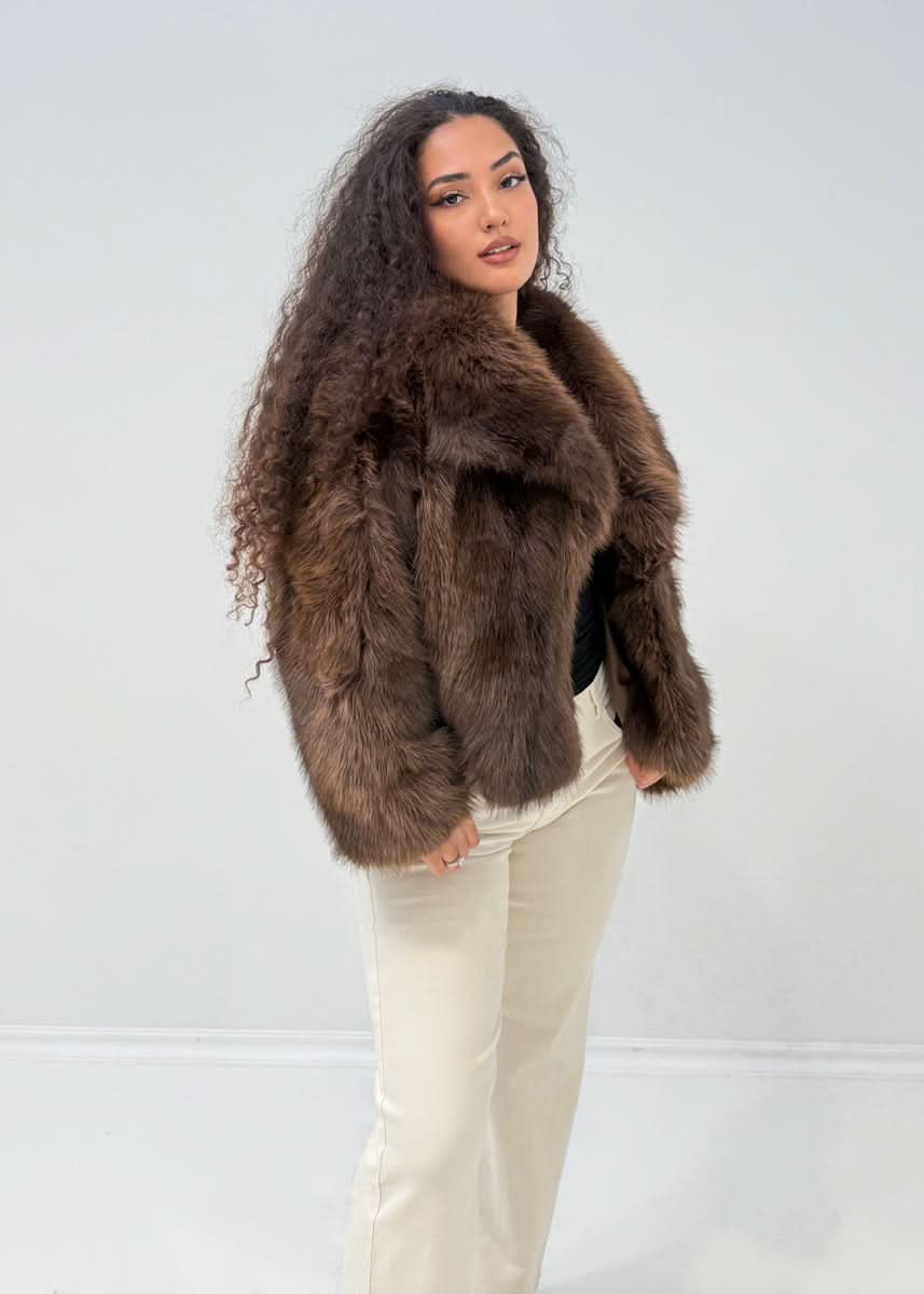 Cropped jacket made from high-quality faux fur with a loose fit. The open front can be styled in many ways—ideal for transitional seasons and winter.