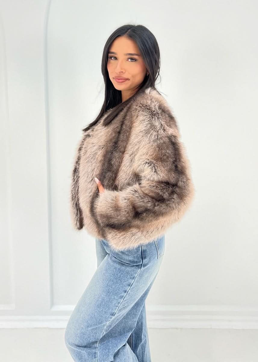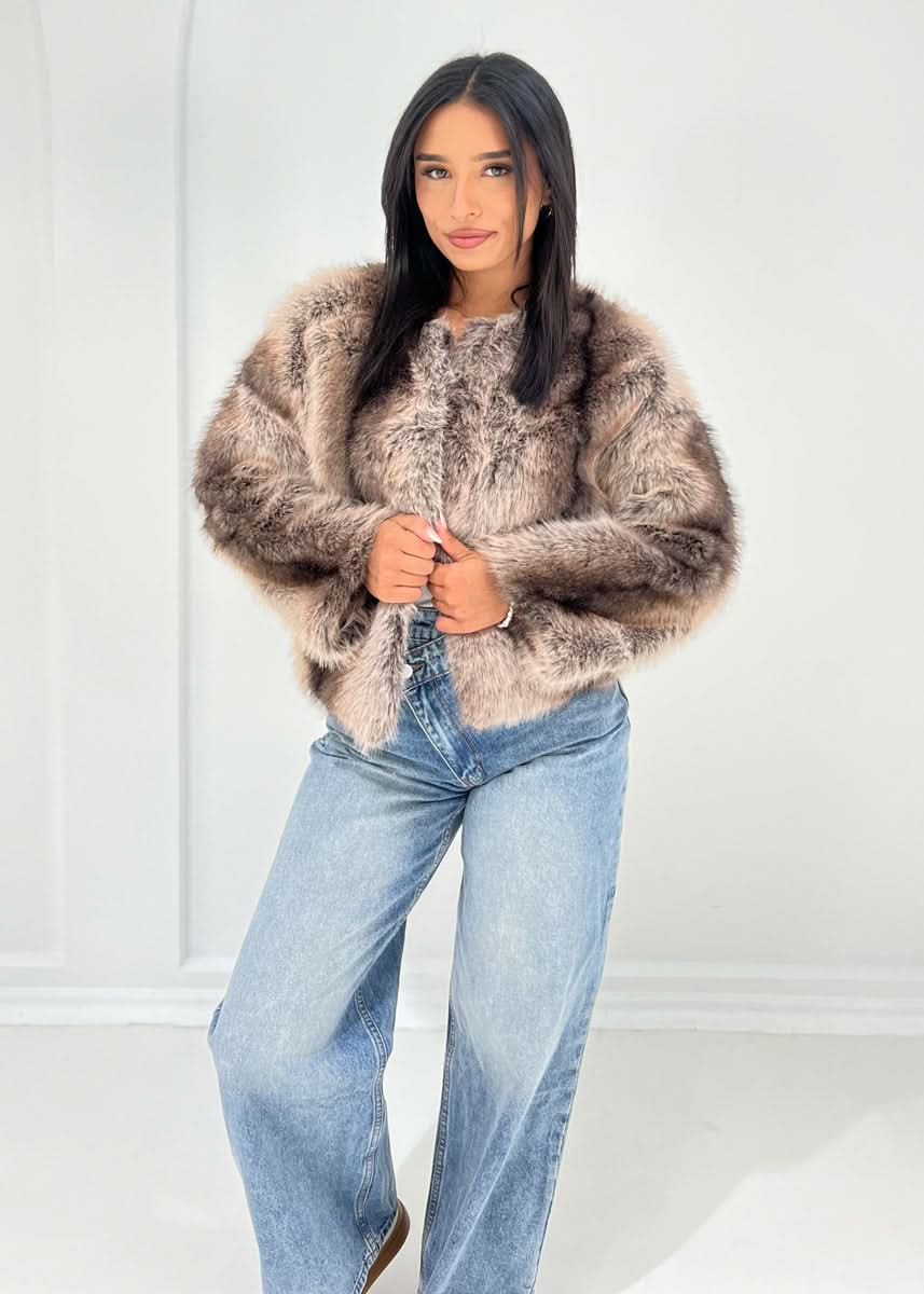 This faux fur jacket by NAHA features a cropped cut and impresses with its dense, soft fur look. It fastens at the front with concealed hook closures and comes with a voluminous collar. The relaxed fit creates a modern silhouette.