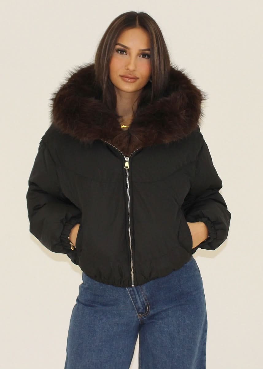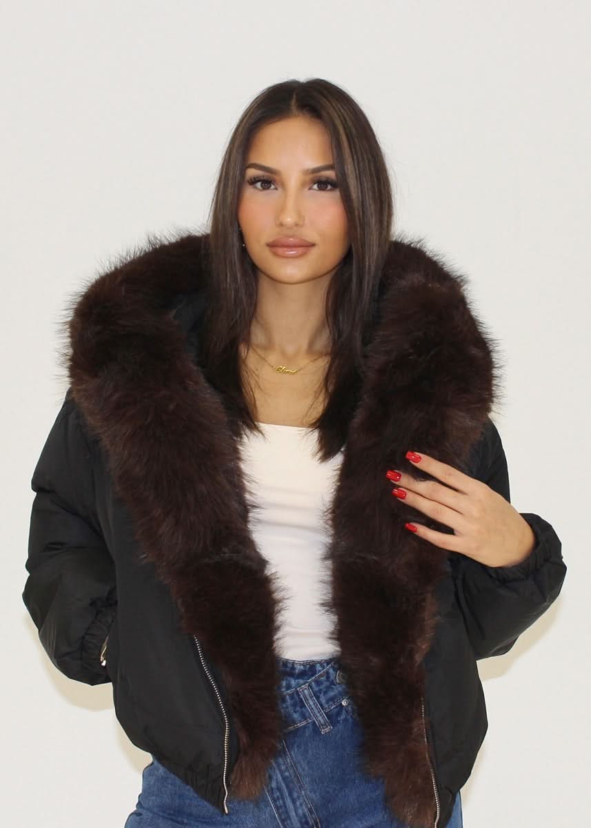 Short jacket with a wide faux fur collar