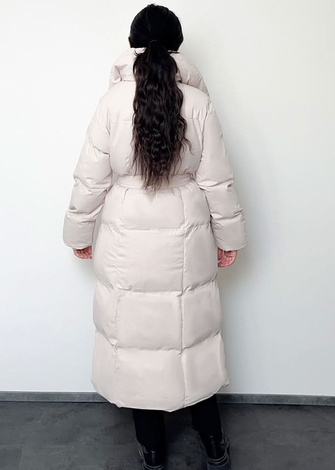 This trendy long winter jacket is an absolute must-have for the season! The wide collar, snap button closure, and matching belt ensure a stylish look. With the zippered pockets, you can keep everything safely stored while the jacket keeps you warm in cold weather. Perfect for anyone who wants to look good even in freezing temperatures.