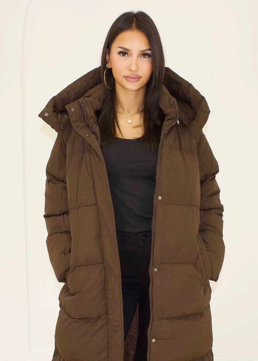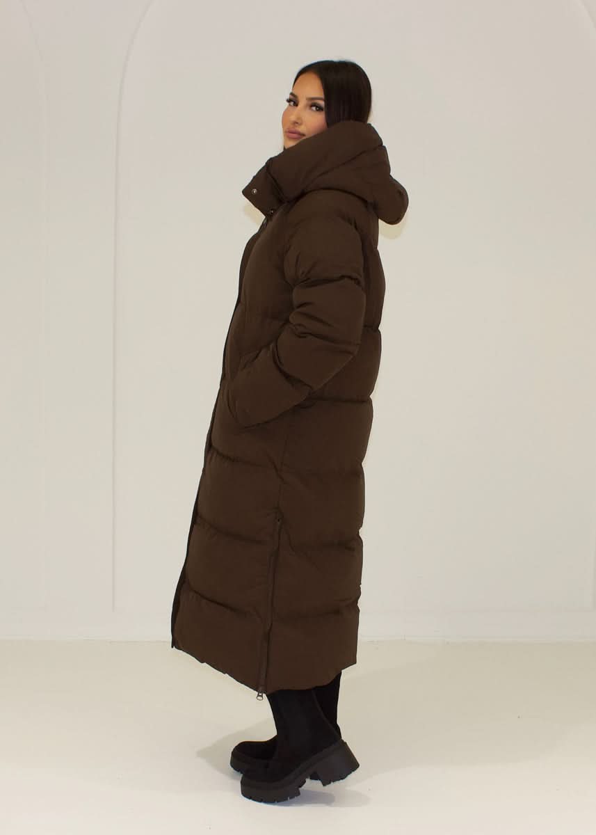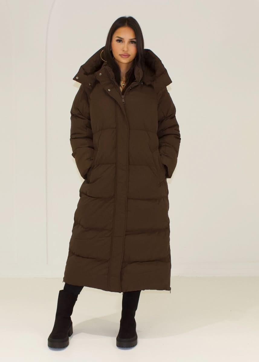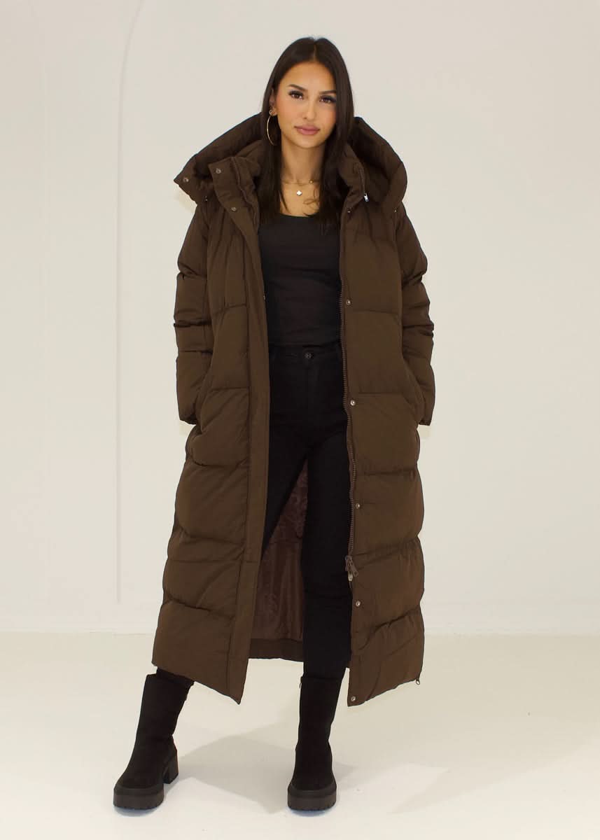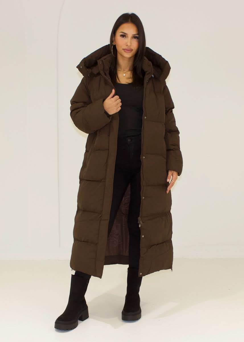 Long quilted coat with hood