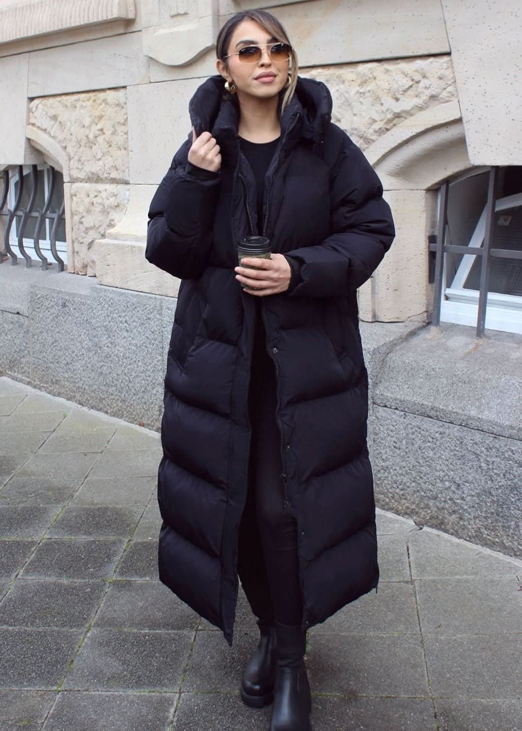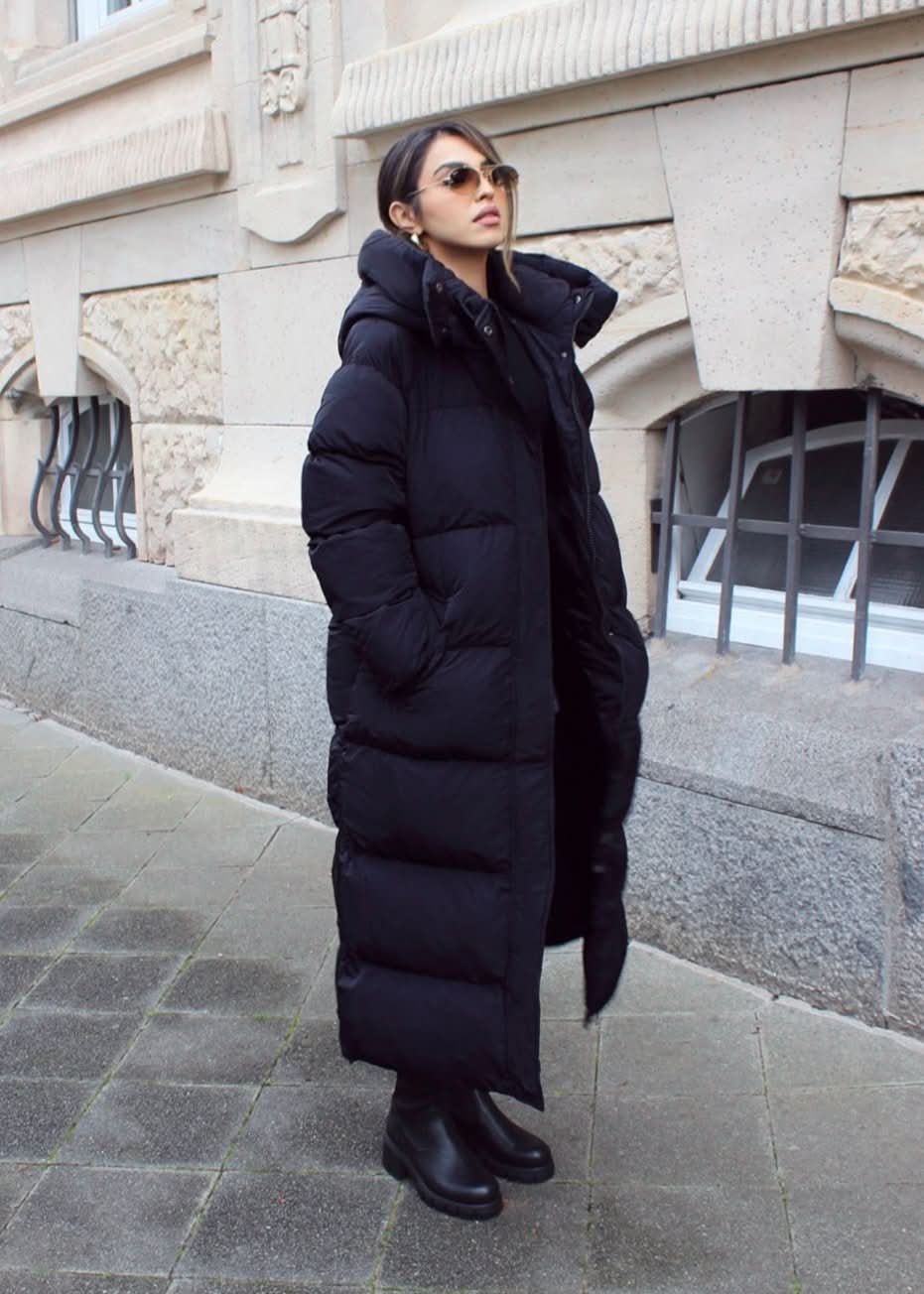 Long quilted coat with a hood