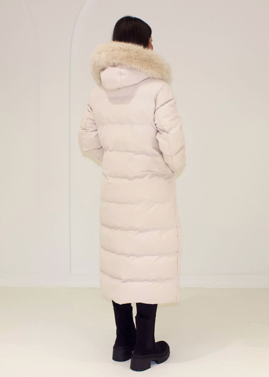 Long winter parka with fur hood
