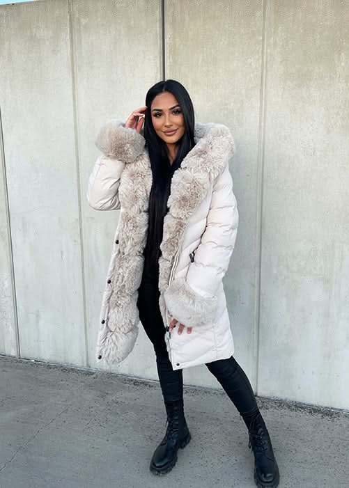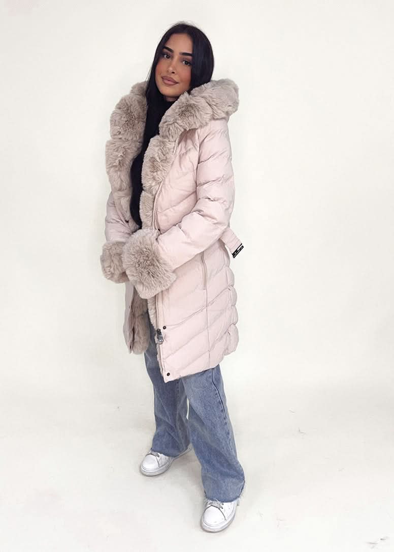 This fitted quilted jacket is an elegant eye-catcher for cold days. The belt accentuates the silhouette, while the soft faux fur trim on the collar and cuffs adds a luxurious finish.